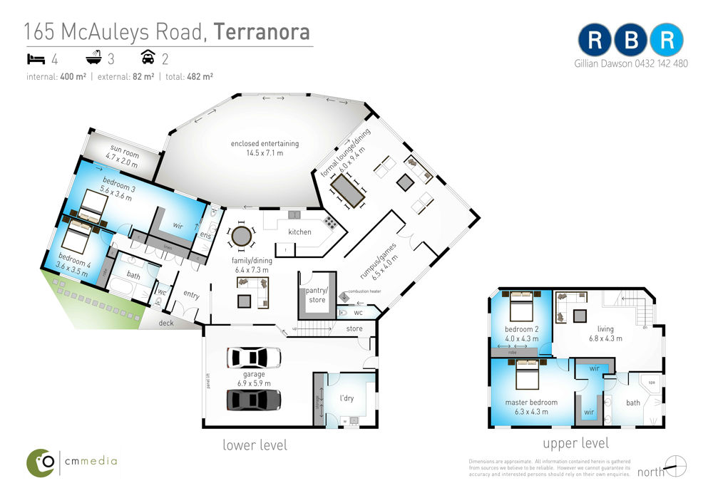 • Formal + informal living, rumpus with fireplace, gourmet gas kitchen