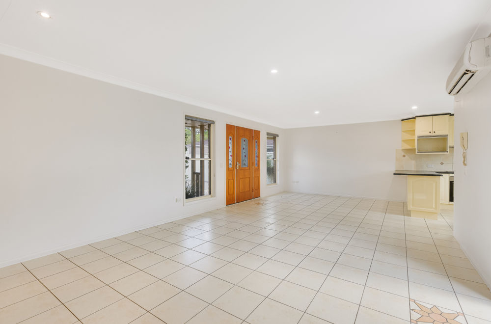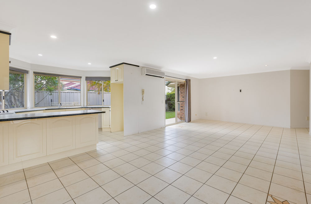 The home features a functional kitchen overlooking the backyard, complete with generous bench space, ample storage, and a handy breakfast bar - perfect for casual meals. Flowing from the kitchen, the open-plan living and dining area is tiled for easy care and opens directly onto the grassy yard, creating a seamless indoor-outdoor connection.