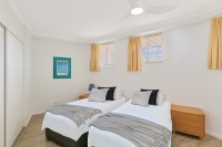 - Second bedroom with twin beds, serviced by the main bathroom
