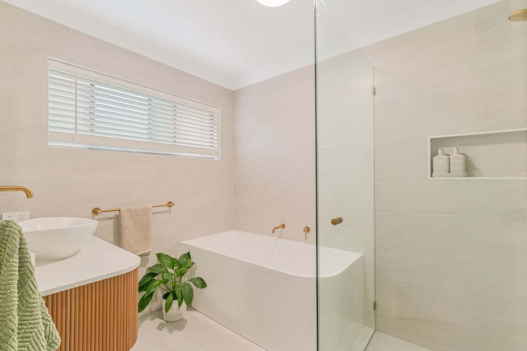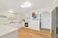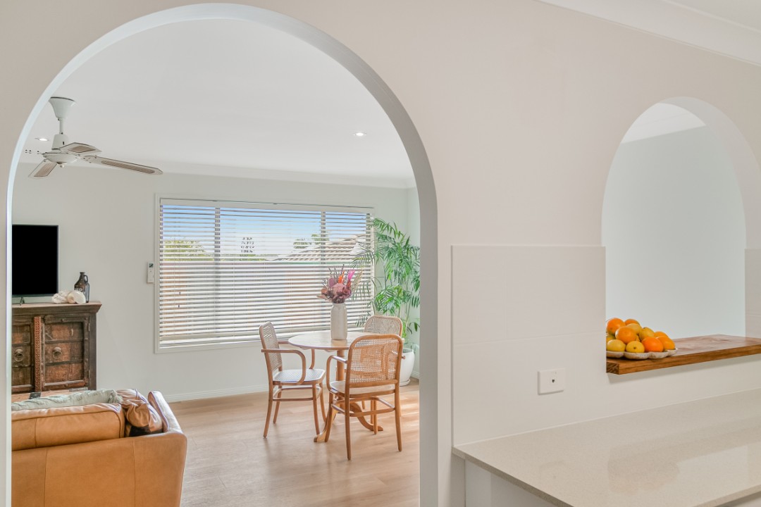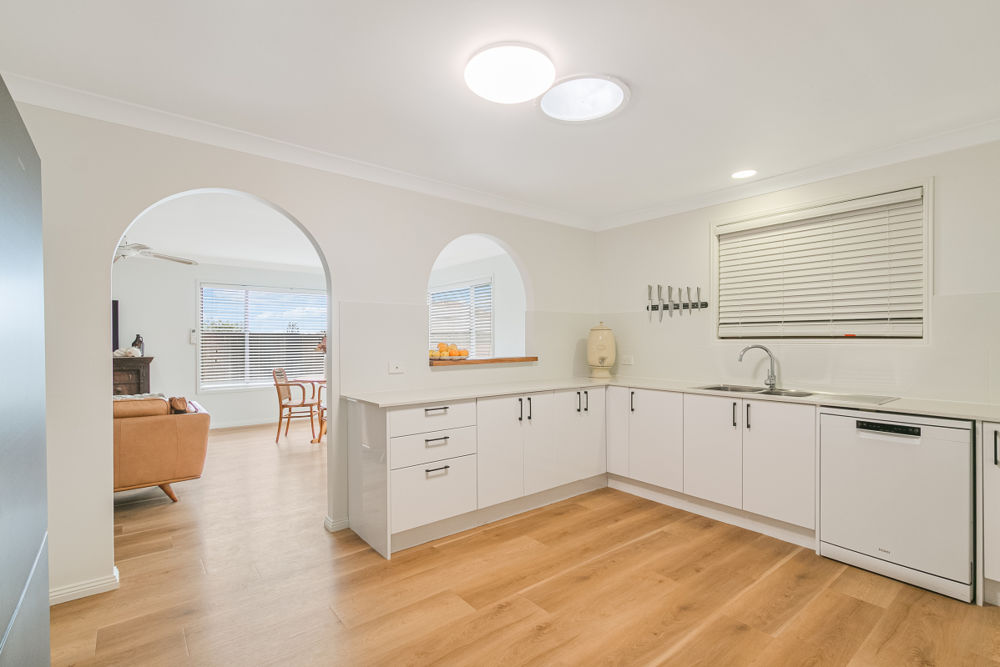 Sun-warmed living spaces and a soft neutral palette create an inviting feel from the moment you step inside. The renovated kitchen features crisp cabinetry, quality appliances and a practical layout that connects seamlessly to the open-plan living and dining area.