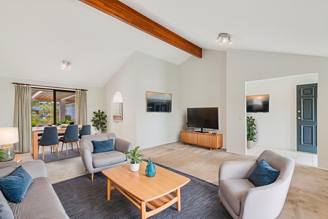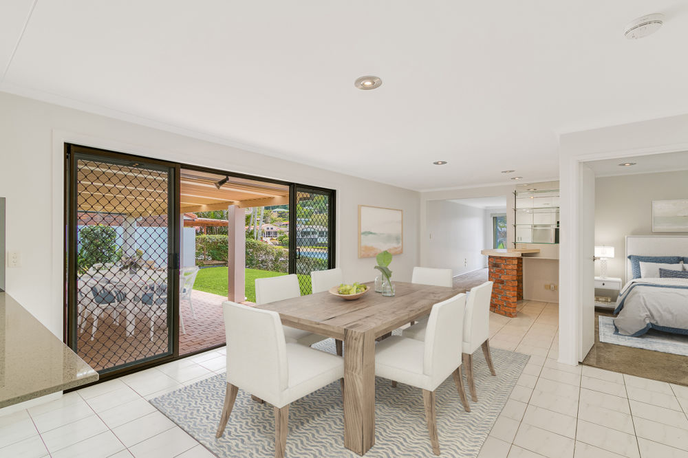 Freshly painted throughout and designed to capture the views from multiple living spaces, the home offers generous proportions and effortless indoor-outdoor flow. The large lounge and dining area boasts a striking high raked ceiling and sweeping water views, while the renovated kitchen with stone bench-tops sits at the heart of the home. A tiled family room opens seamlessly to the covered outdoor entertaining, perfect for long lunches and relaxed evenings by the water.