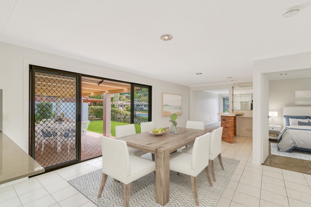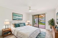 The spacious main bedroom is a true retreat, featuring a walk-in robe, refreshed ensuite and direct access to the patio overlooking the water. Three additional bedrooms include built-in robes and ceiling fans, with one enjoying its own private balcony and stunning outlook. A refreshed main bathroom with bath, shower and separate toilet caters perfectly to family living.