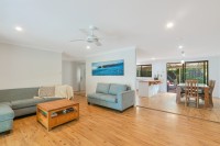 - Spacious living area with air-conditioning & ceiling fan, connecting the covered entertaining area, overlooking the sparkling pool