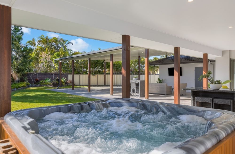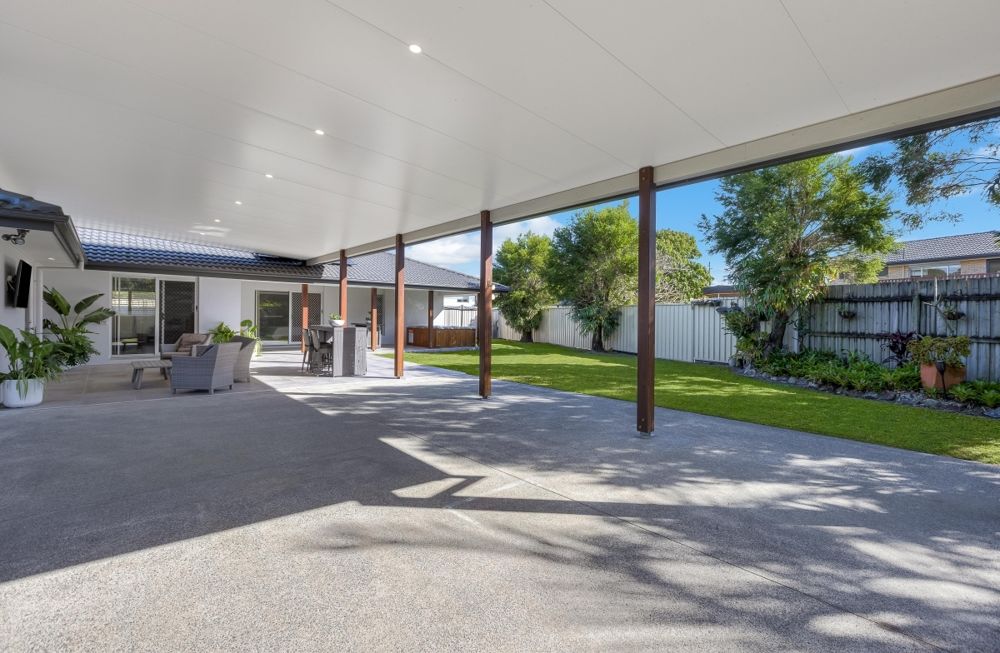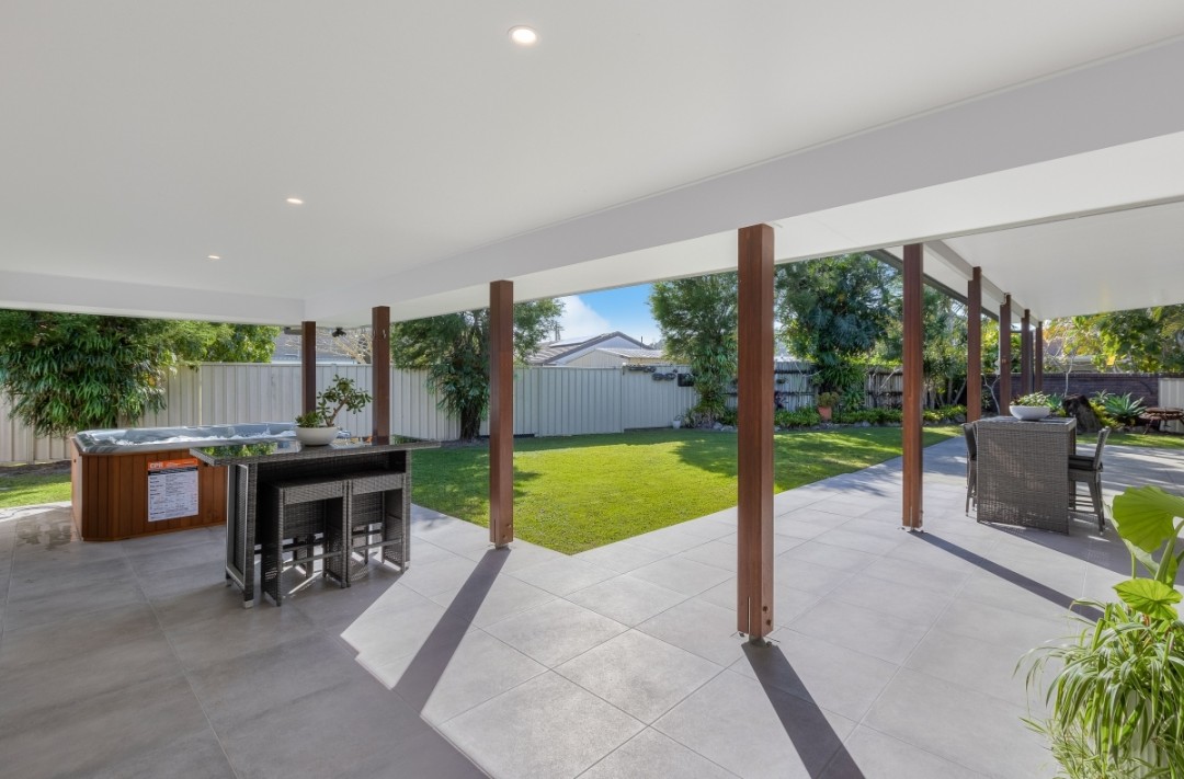 - Large covered outdoor entertaining area & undercover spa overlooking the flat back yard