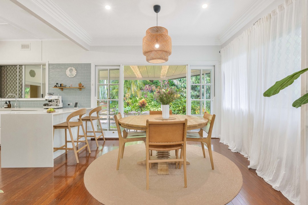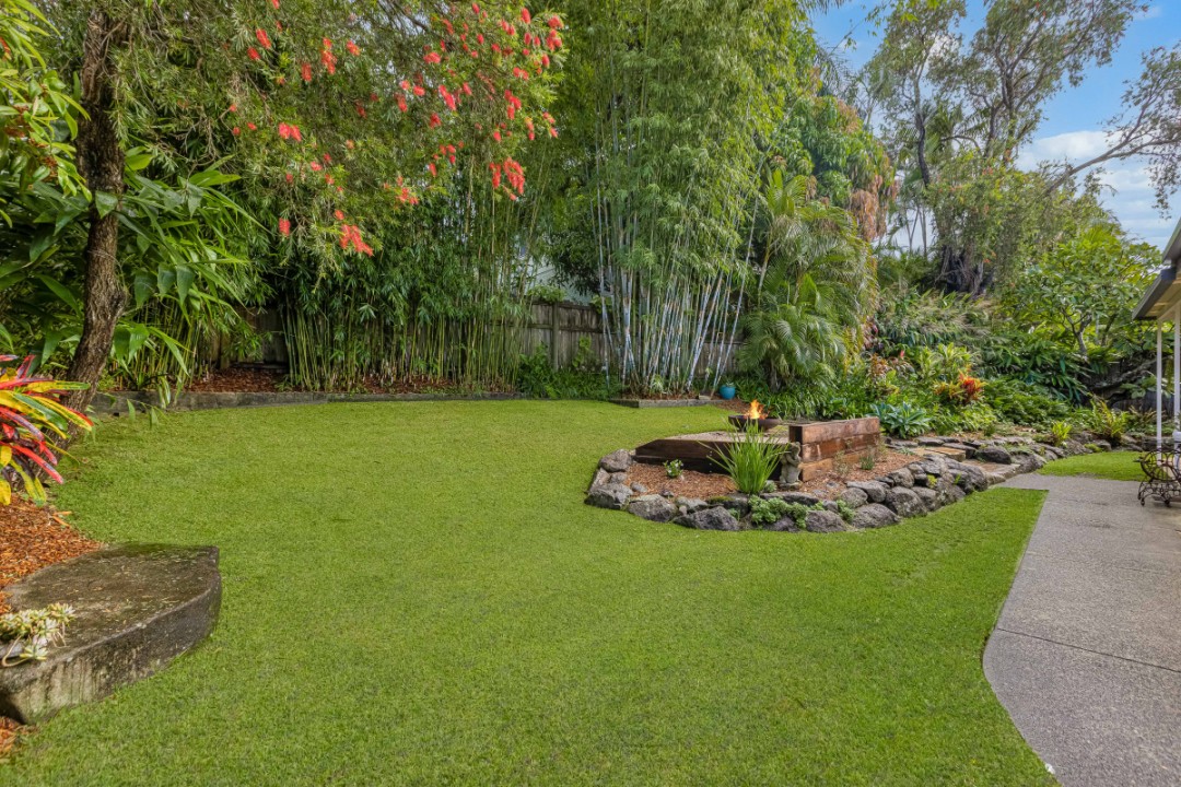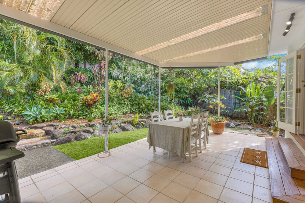 Outdoors, the property truly shines. Surrounded by lush, established tropical gardens, the backyard is a private oasis with side access and plenty of space to enjoy. A covered outdoor area creates the perfect setting for year-round entertaining and alfresco dining, whether hosting guests or unwinding with family.
