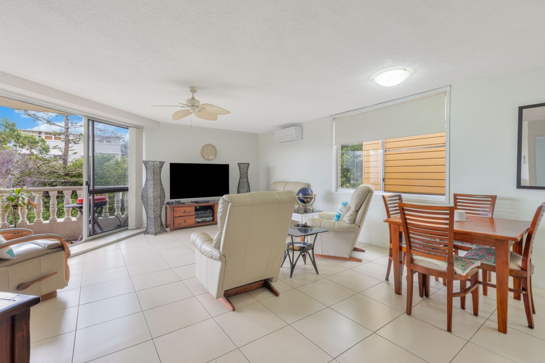 Inside, the apartment features a bright and airy open-plan living and dining area that flows seamlessly onto a private balcony, where you can unwind while taking in beautiful ocean outlook. The kitchen and bathroom are tidy and well maintained, while air-conditioning in the living area and ceiling fans throughout ensure year-round comfort. The home has a warm and welcoming feel, offering a comfortable and practical space to relax and enjoy coastal living.