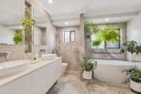 Accommodation is well-appointed, highlighted by a stunning main bathroom featuring a bathtub and double vanity. The master bedroom serves as a peaceful retreat with its own walk-in wardrobe and ensuite. Additional features include Crimsafe window screens throughout, a modern laundry with direct outdoor access, a double carport plus a lock-up garage, and quality finishes at every turn.