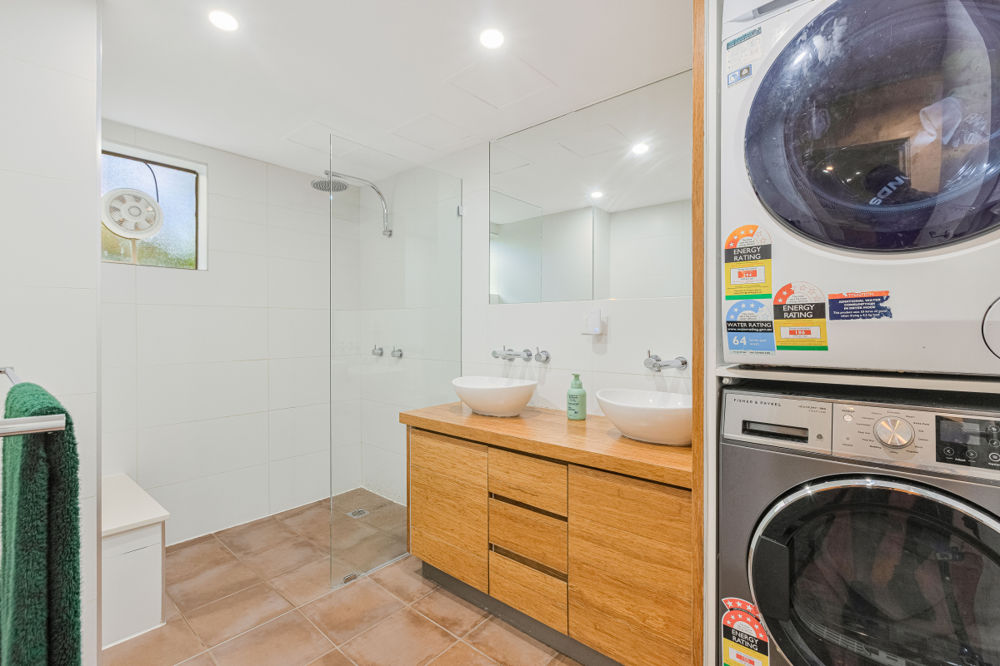 - Bathroom combined with laundry for functionality