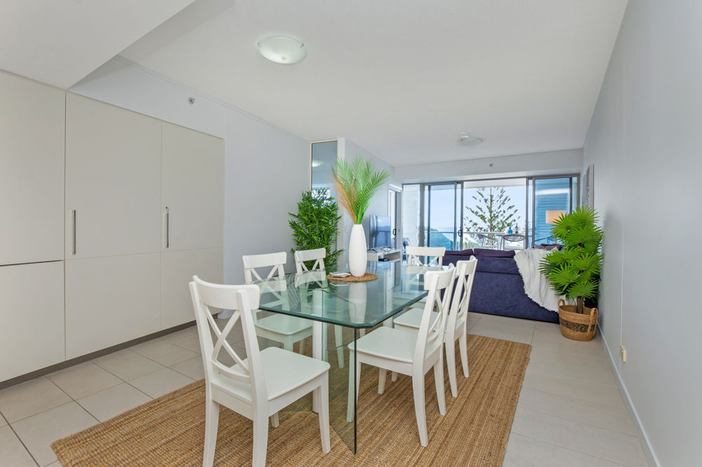 This 8th floor furnished apartment is located in the centre of Coolangatta but nestled into the base of Kirra Hill, ready to move into!