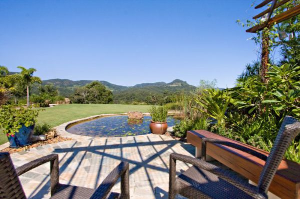 The manicured gardens, designed by Michael Degood in back feature an idyllic water lily pond with trickling waterfall surrounded by natives and tall bamboo. Follow the stone paved pathway through to the viewing platform - the perfect tranquil setting from which to enjoy the spectacular mountain and valley views.