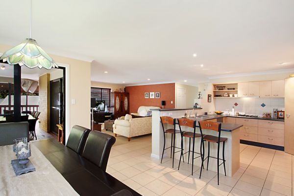 The living room leads out to the large undercover deck/entertaining area, creating a seamless flow between indoor and outdoor living. The deck overlooks the practical backyard surrounded by flourishing bush land as far as the eye can see.