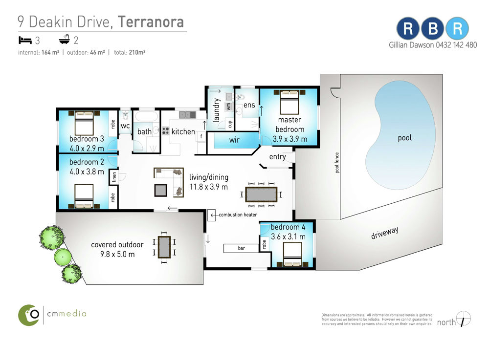 - 4 bedrooms all with built in robes, the master featuring a large walk in robe & ensuite