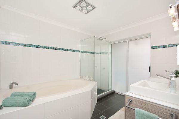 All four bedrooms are massively proportioned with fresh carpet and mirrored built in wardrobes. The master bedroom boasts its own ensuite with floor to ceiling tiles while the remainder of the bedrooms are serviced by a spacious bathroom also with floor to ceiling tiles, a bath, shower, double vanity and separate toilet.