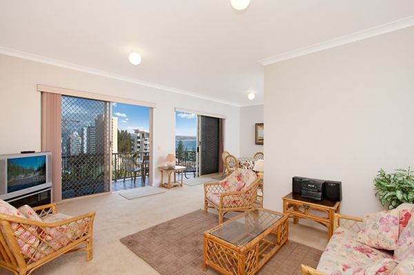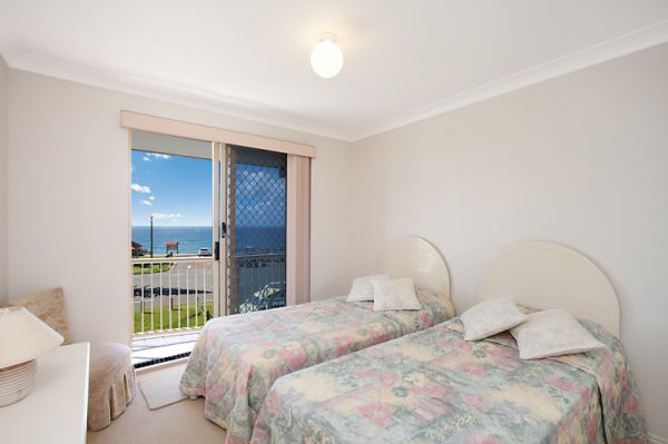 This lovely 2 bedroom unit has great views overlooking Rainbow Bay, including 1 Queen and 2 single beds, 2 bathrooms with ensuite off main, Tv, Video, dishwasher, 2 balconies, On the top level of a 3 storey walk up. Single lock up garage. Own laundry facilities with washing machine and clothes dryer. Great spot, close walk to local shops and clubs.